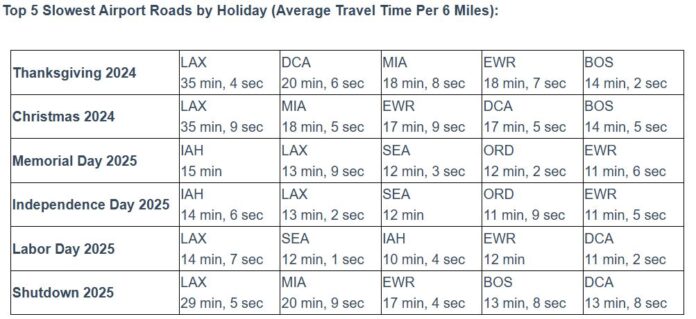TomTom released a report Monday analyzing road congestion around 11 major U.S. airports during peak travel periods, including the November 2025 federal government shutdown and 2024-2025 holidays, drawing on multi-year data from 600 million connected devices to identify national trends and regional disparities in traveler access.